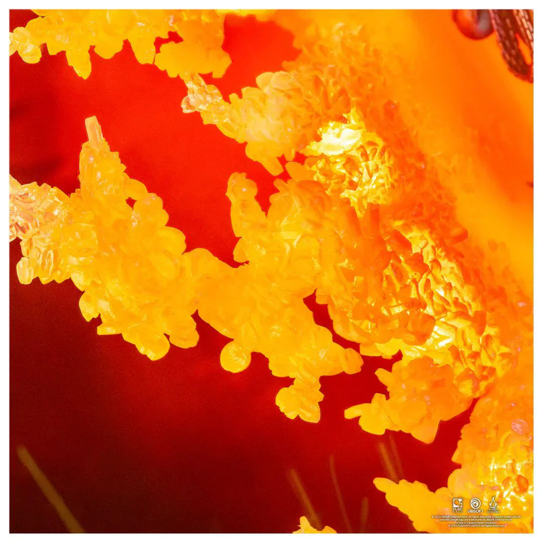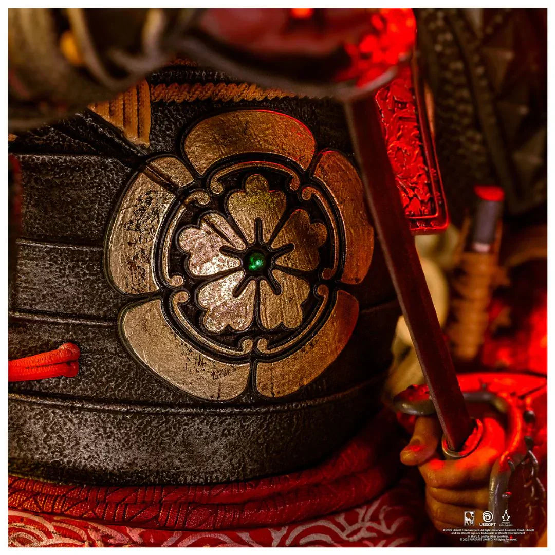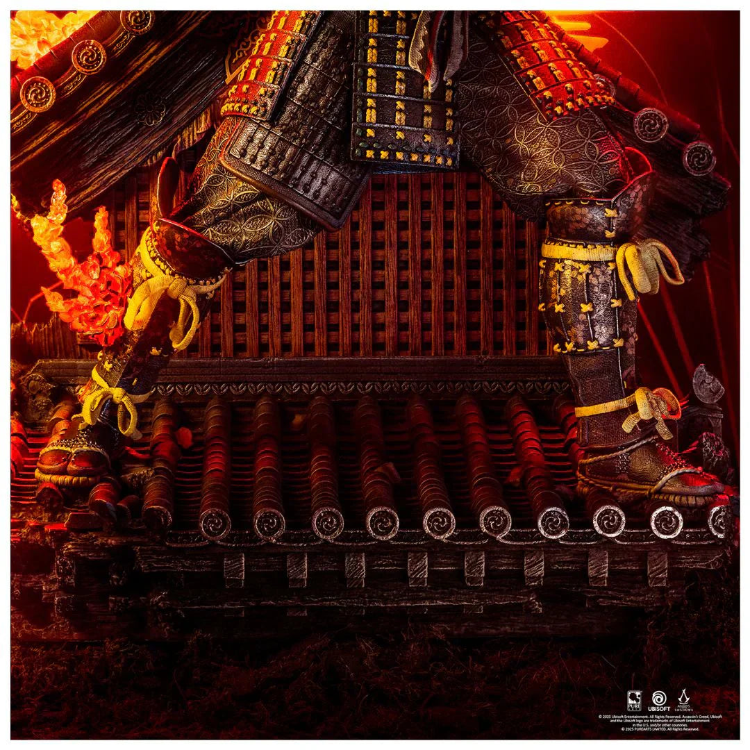 Mit gezogenen Katanas sind Naoe & Yasuke bereit, alles zu bekämpfen, was ihnen in den Weg kommt. Naoe sitzt heimlich auf der Gesims des kunstvollen Tenshu-Dachs mit ihrer versteckten Klinge, bereit, ihr Erbe zu verteidigen, während Yasuke Macht und Stärke ausstrahlt. Gemeinsam sind sie bereit, eine neue Ära für Japan einzuleiten. Der charakteristische LED-beleuchtete Animus-Effekt von PureArts erhellt die Statue mit einer dekonstruierenden Sonne im Hintergrund.