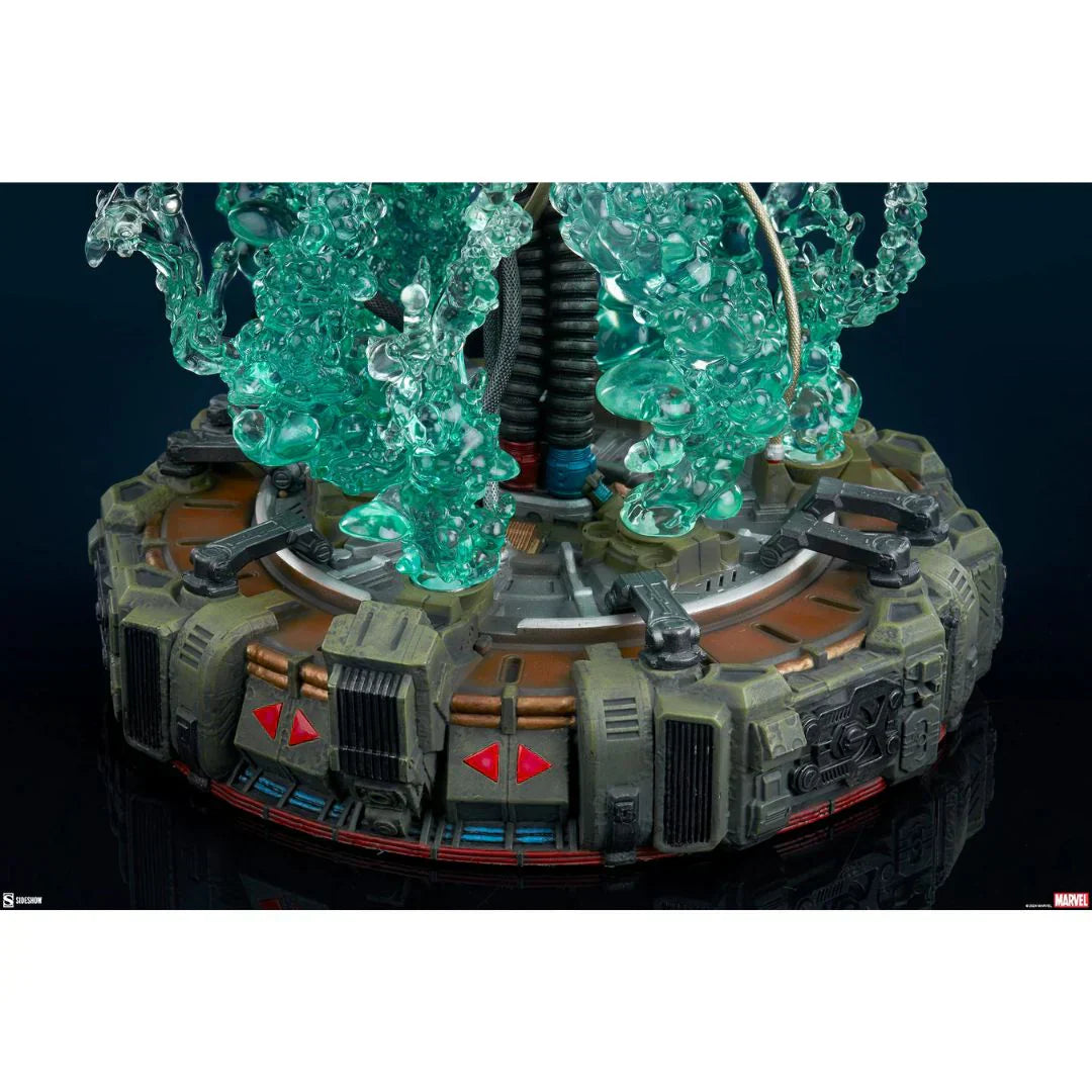 Dieses vollständig gestaltete X-Men-Sammelobjekt stellt Wolverine als den Überlebenden und Pfeiler der Stärke dar, der den Fans bekannt ist. Inspiriert von seiner Transformation in eine lebende Waffe, vereint das gesamte Stück elementare und industrielle Aspekte durch skulpturiertes Wasser, Drähte und die gereizte Haut, die von Infusionsports gezeichnet ist, die flüssiges Metall zwingen, in sein Skelett einzudringen. Die Marvel-Statue verfügt auch über Lichtfunktionen unter den klaren Gussblasen, die eine unheimliche und aufregende Atmosphäre schaffen, die in jedem Regal auffällt. Vom zirkularen Tankboden bis zu Wolverines wildem Haar betont jedes Detail den Schmerz und das Risiko von Wolverines Reise, ein Superheld zu werden.